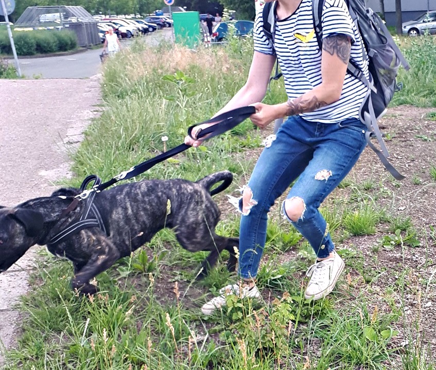 - zieht an der Leine und