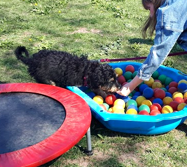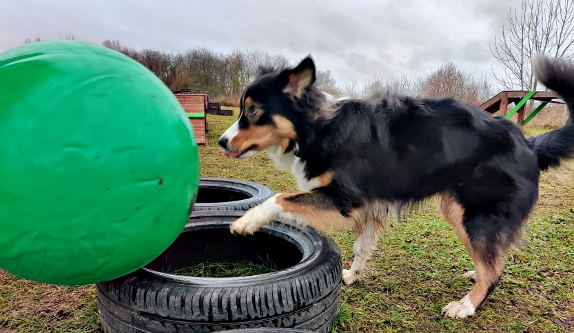 Kontrollierter Spaß für alle Treib- und Arbeitsfreudige Hunde. Auf einem definierten Spielfeld kann der Vierbeiner verteilte Gymnastikbälle z. B. in ein Tor rollen, oder an andere festgelegte Orte. Ein Hundesport für Kopf und Körper.